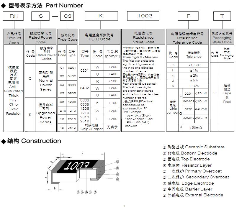 風(fēng)華高科高阻值厚膜片式固定電阻器型號(hào)表示方法: