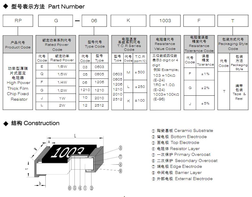 風(fēng)華功率型厚膜片式固定電阻器型號(hào)表示方法: