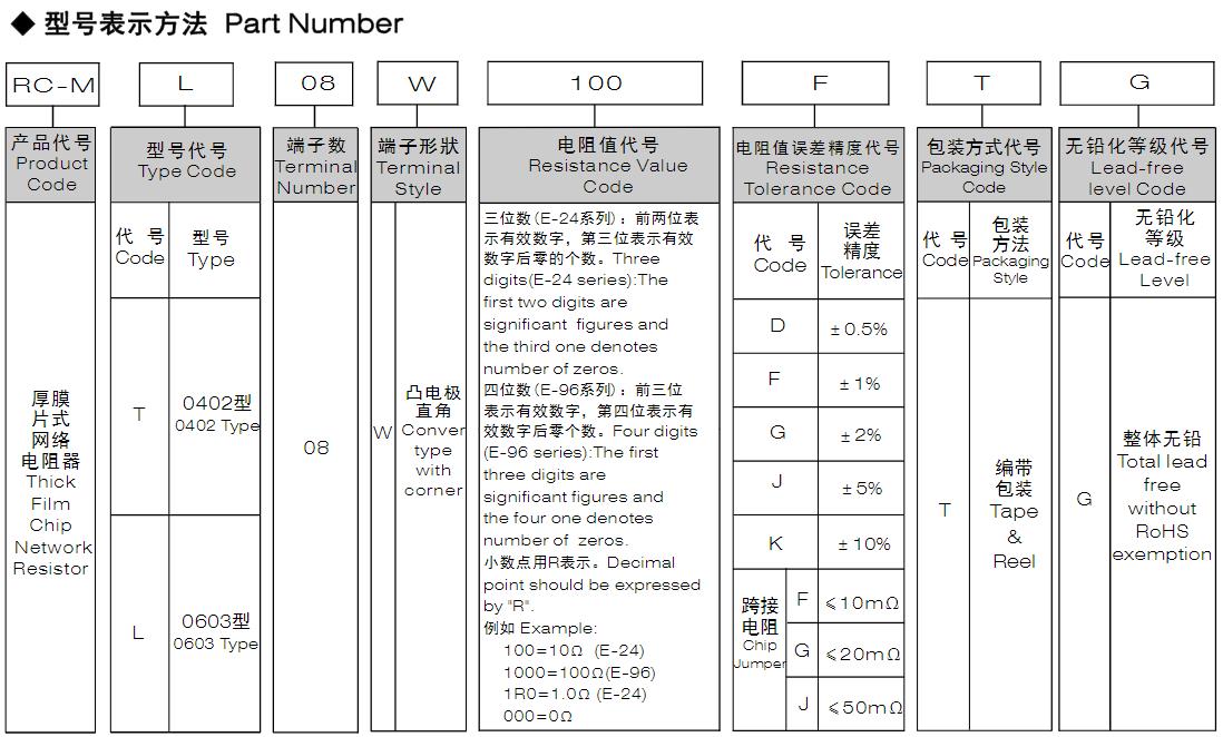 風(fēng)華高科無鉛厚膜片式網(wǎng)絡(luò)電阻器型號命名規(guī)則: