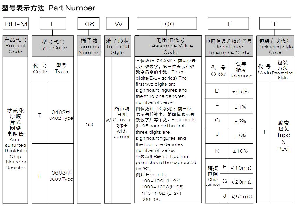 風(fēng)華高科 抗硫化厚膜片式網(wǎng)絡(luò)電阻器型號命名規(guī)則: