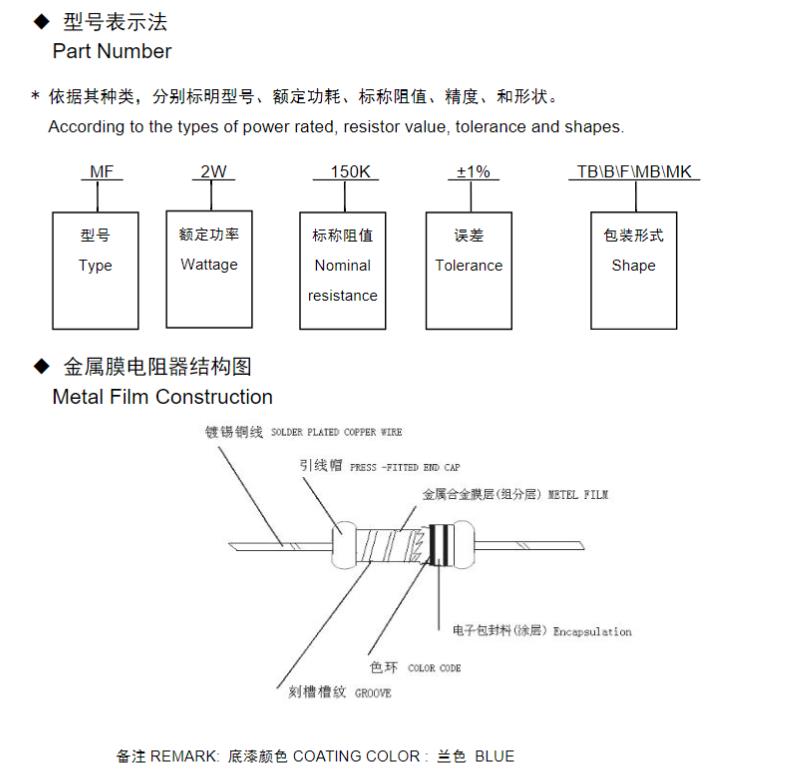 風(fēng)華金屬膜電阻器命名規(guī)則:
