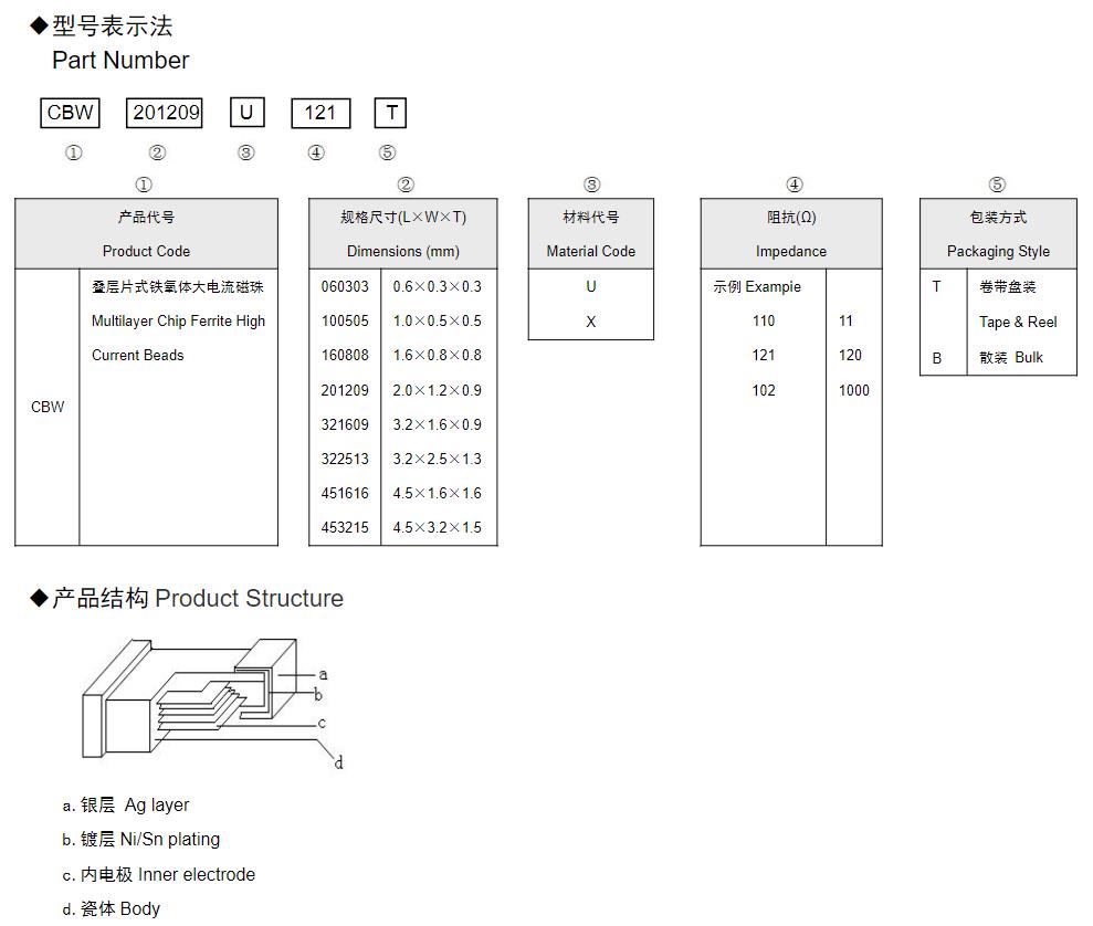 風(fēng)華高科疊層片式鐵氧體大電流磁珠(CBW)命名規(guī)則: