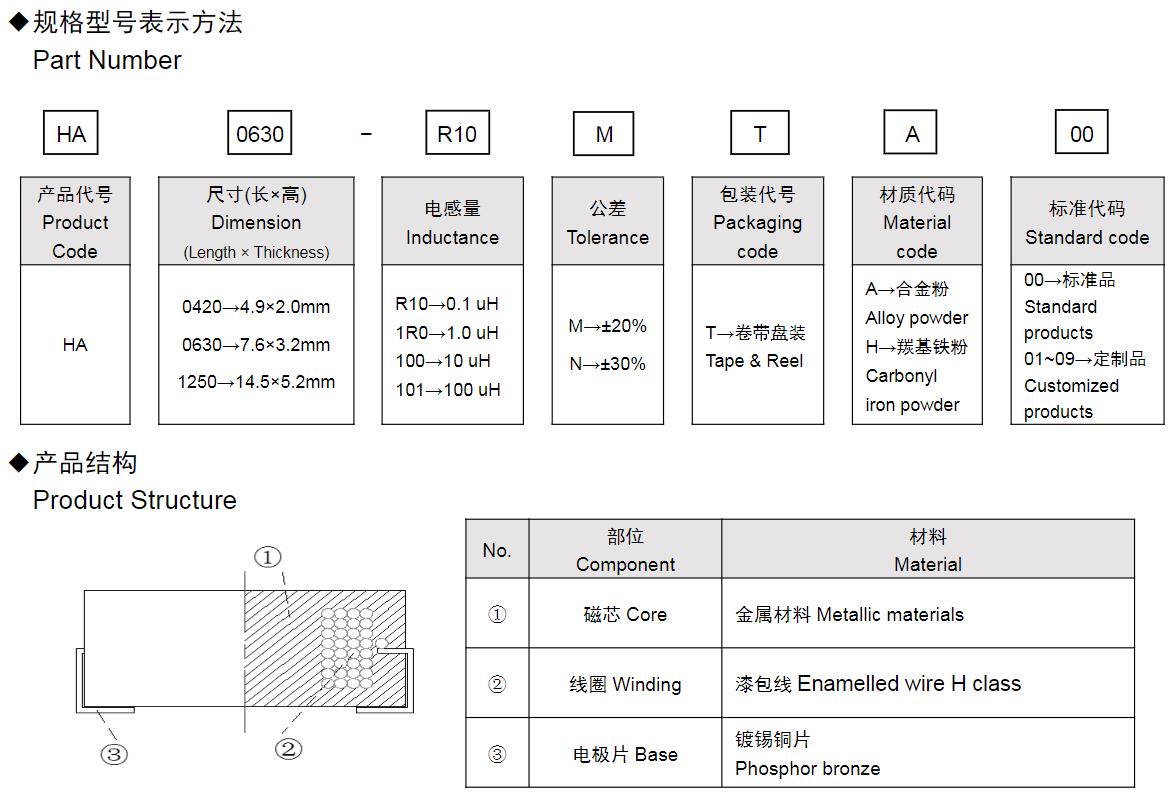 風(fēng)華高科HA系列功率電感器命名規(guī)則: