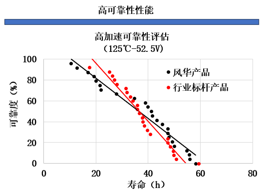 風(fēng)華高科成功自主開發(fā)了高容高壓材料體系,攻克了均一薄介、異質(zhì)共燒、層壓變形等核心材料應(yīng)用工藝技術(shù),突破0603X106高電壓高可靠性性能要求,產(chǎn)品BDV達(dá)到210V,絕緣電阻210MΩ,且1000h老化后,15V直流偏置電壓下,產(chǎn)品容量保持1μF以上,可靠性與行業(yè)標(biāo)桿產(chǎn)品近似,綜合性能達(dá)到國際頭部企業(yè)同等水平。