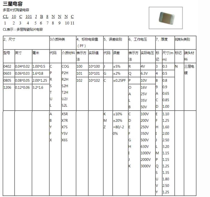 三星貼片電容物料編碼識(shí)別規(guī)則對(duì)照表