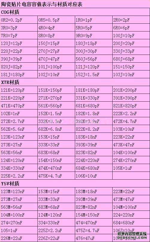 陶瓷貼片電容容值對(duì)照表