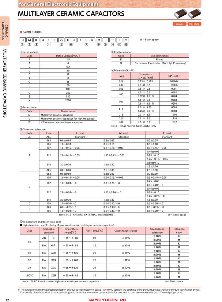 太誘電容編碼規(guī)則對照表: