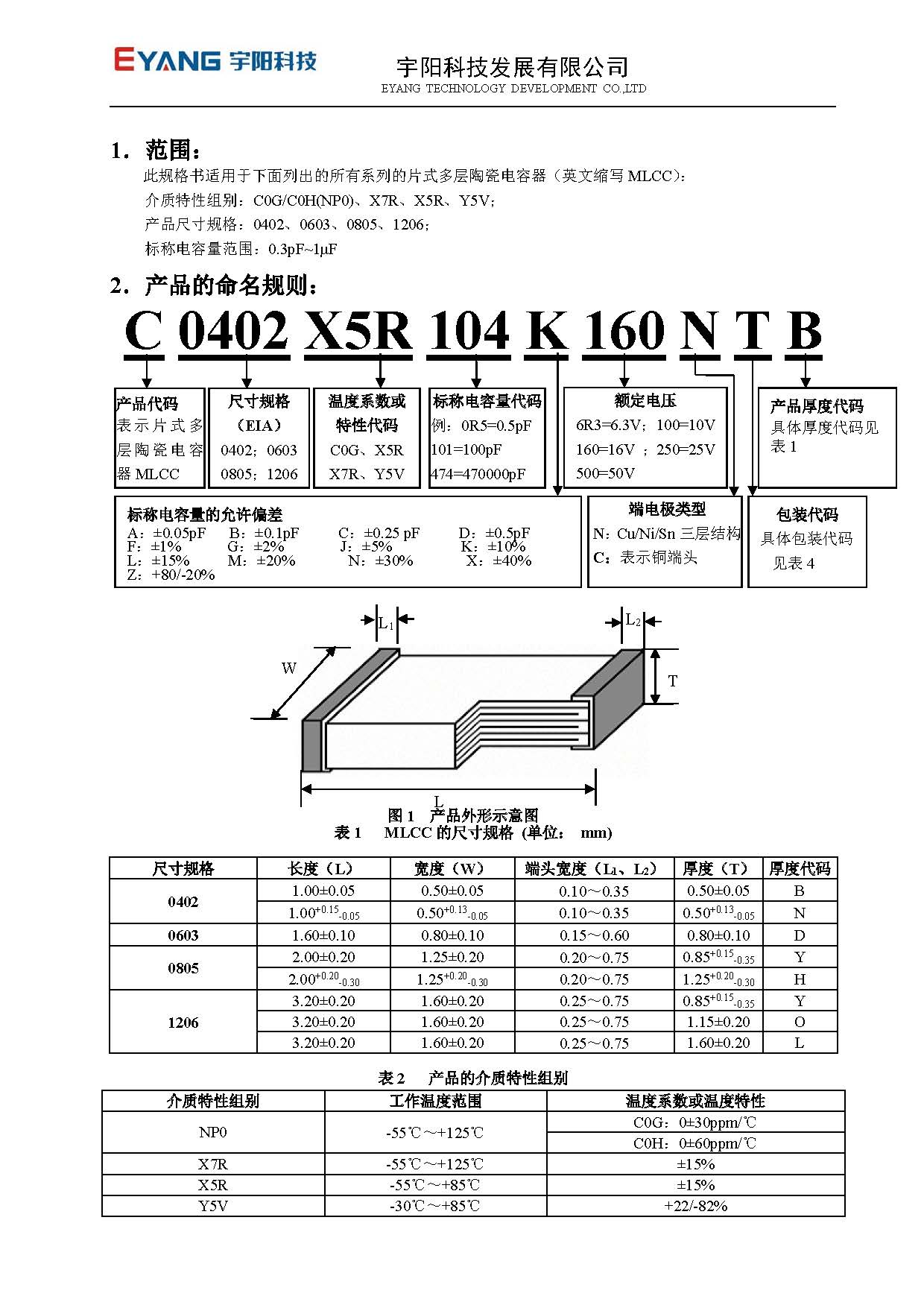 宇陽(EYANG)品牌-貼片電容-電阻元器件: