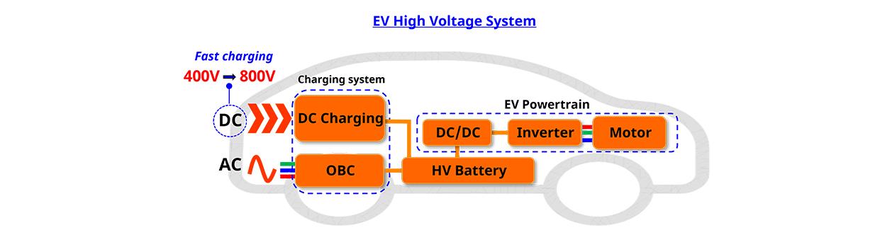 電動(dòng)汽車(chē)Powertrain的基本構(gòu)成為儲(chǔ)存能源的高電壓電池、逆變器和電動(dòng)馬達(dá)。電動(dòng)汽車(chē)Powertrain使用高電壓。與電動(dòng)汽車(chē)耗電效率相關(guān)的部分是高效的電力轉(zhuǎn)換。電動(dòng)汽車(chē)中有LDC、OBC、Inverter等多種電力轉(zhuǎn)換裝置。采用多種DC/DC Converter Topology,可實(shí)現(xiàn)各裝置間的整合。實(shí)際上OBC(On Board Charger)和LDC(Low-Voltage DC/DC Converter)也在實(shí)現(xiàn)整合。若實(shí)現(xiàn)系統(tǒng)整合,可以減少零件數(shù)和使用空間。