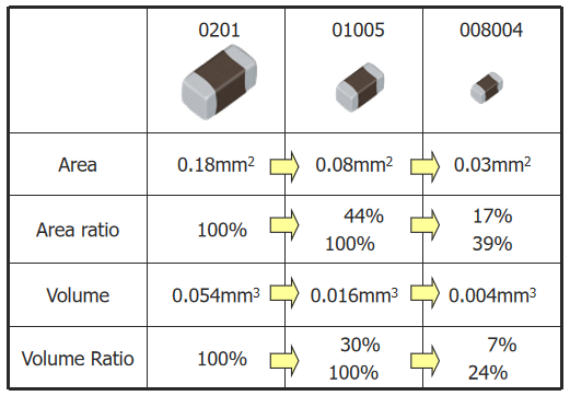 太陽(yáng)誘電推出超小型電容(以008004英寸的產(chǎn)品)為例進(jìn)行說(shuō)明: