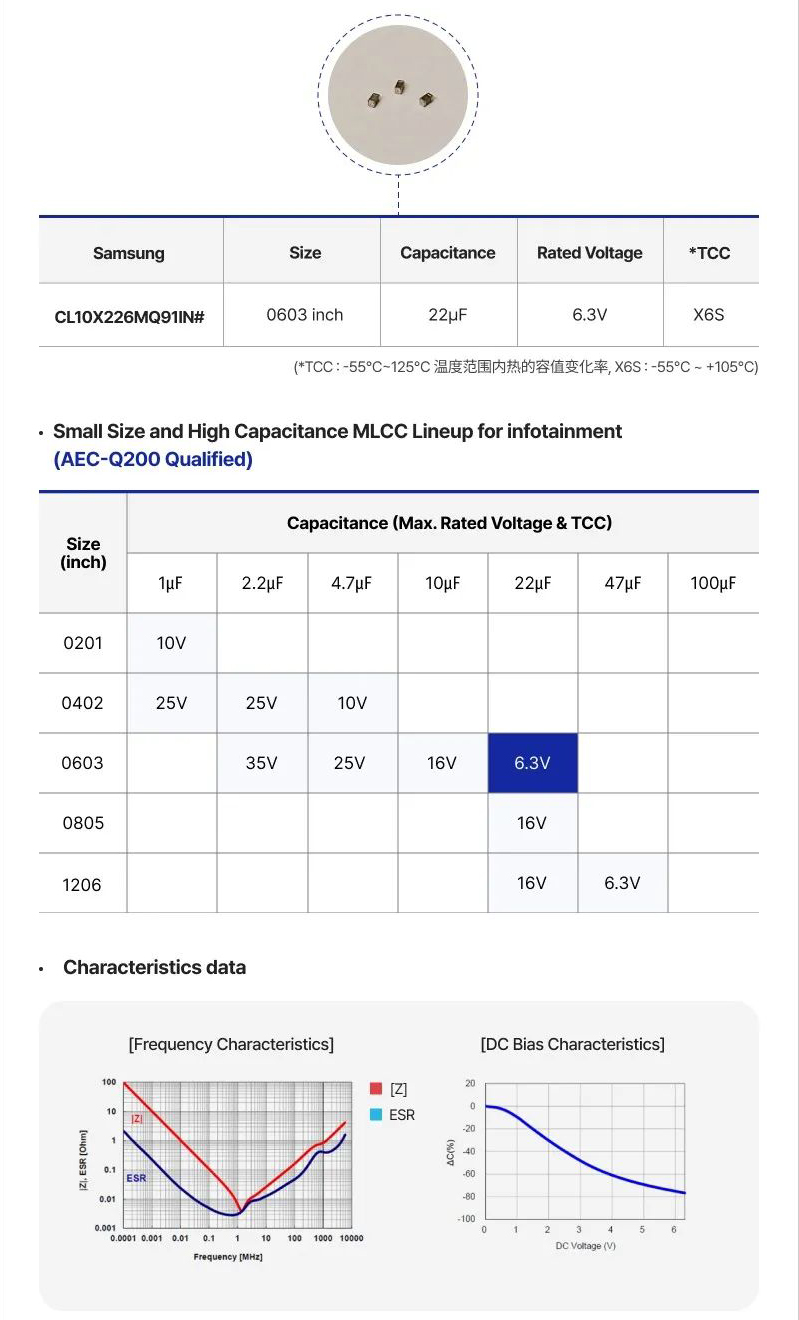 三星電機(jī)新品車(chē)載電容MLCC 0603 22uF