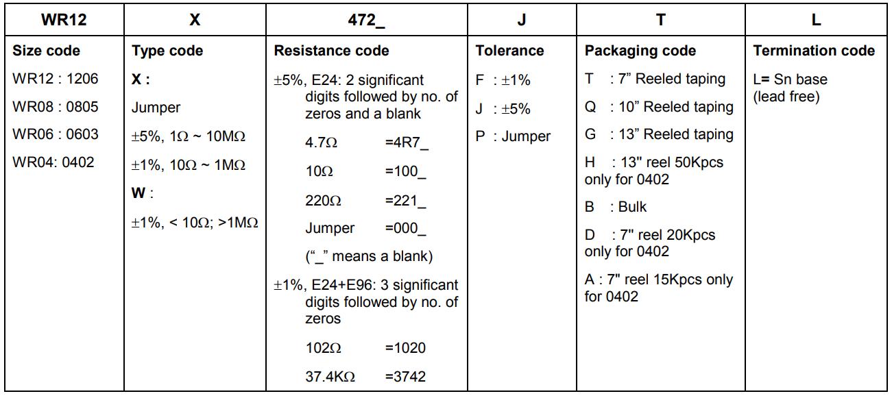 華科貼片電阻命名規(guī)則